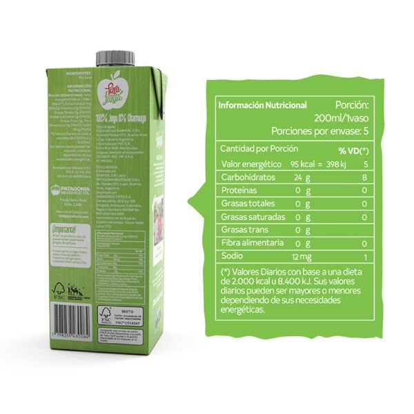 100% jugo exprimido de manzanas verdes, sin conservantes ni azúcares añadidos