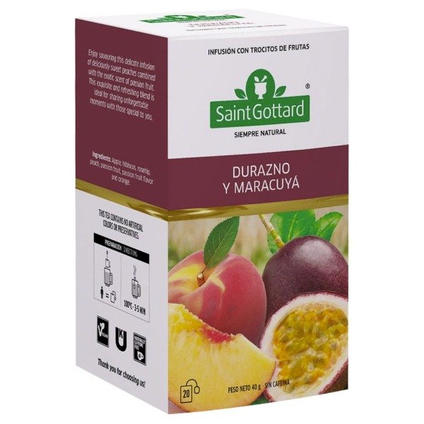 Disfrute saboreando esta delicada infusión de dulces y sabrosos duraznos, combinados con el exótico perfume del maracuyá, y deléitese con este exquisito y refrescante blend, ideal para compartir momentos inolvidables en agradable compañía.