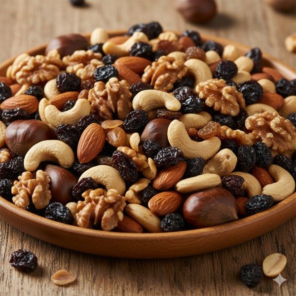 MEZCLA DE FRUTAS SECAS: MANI, NUEZ, ALMENDRA, CASTAÑA DE CAJU Y PASAS DE UVA
