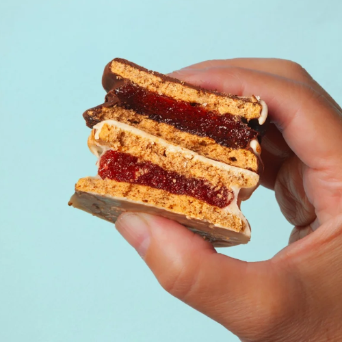 Alfajor de chocolate negro con relleno de arandano sin taccc