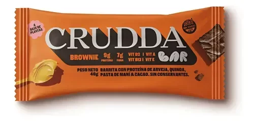 Barra Saludable Crudda Bar es a Base de Proteína de Planta Arvejas, Quínoa, Pasta de maní , Cacao y está bañada en chocolate. Edulzadas con una fibra prebiótica de absorción lenta llamada FOS (fructooligosacáridos) y un touch de fruta deshidratada.