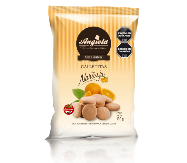 Almidón de maíz, azúcar, harina de arroz, fécula de mandioca, margarina, aceite de girasol, huevo en polvo, agua, leche en polvo descremada, emulsionante (goma xántica), antioxidante (vitamina C), polvo leudante (almidón de maíz, bicarbonato de sodio, bitartrato de potasio), sal, saborizante (esencia de naranja), conservante (INS 282). CONTIENE: LECHE Y HUEVO. PUEDE CONTENER: SULFITOS Y DERIVADOS DE SOJA.