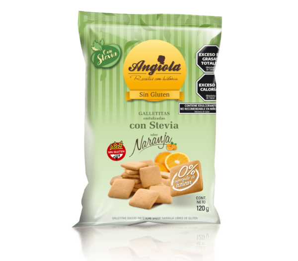 Almidón de maíz, harina de arroz, agua, maltodextrina, fécula de mandioca, aceite de girasol, margarina, leche en polvo descremada, huevo en polvo, espesante (goma arábiga), polvo leudante (bicarbonato de sodio, bitartrato de potasio), antioxidante (vitamina C), saborizantes (esencia de naranja),conservante (propionato de calcio), edulcorantes no nutritivos (sucralosa INS 955, glicósidos de esteviol INS 960a). CONTIENE: LECHE Y HUEVO. PUEDE CONTENER: SULFITOS Y DERIVADOS DE SOJA.