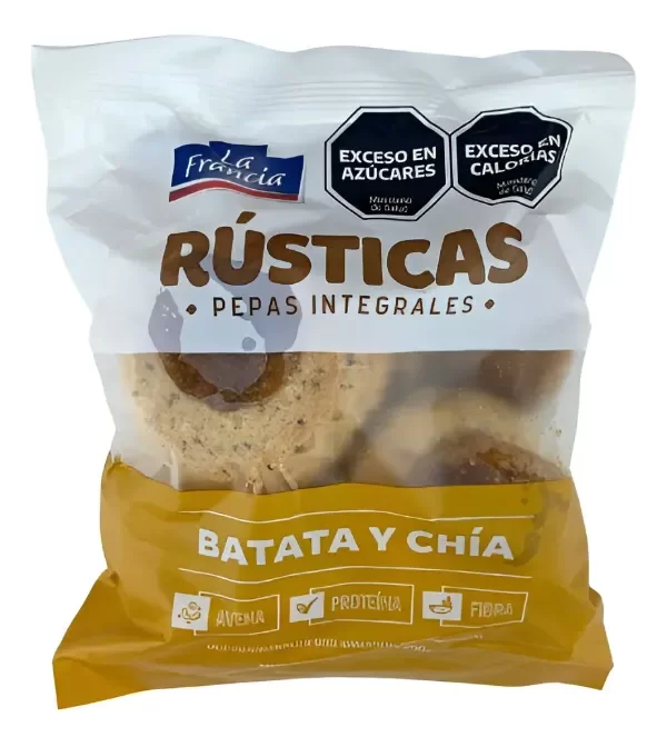 INGREDIENTES: Harina integral, harina 000 enriquecida según ley 25.630 (Ácido fólico 2,2 mg/kg, Tiamina (B1) 6,3 mg/kg, riboflavina (B2) 1,3 mg/kg, niacina 13 mg/kg.), agua, margarina, dulce de membrillo, azúcar, avena, semillas de chía, huevo en polvo, leudantes químicos INS 500ii, INS 450ii, CONS: INS 282, COL: INS 110. CONTIENE: HUEVOS, AVENA, DERIVADOS DE TRIGO. PUEDE CONTENER MANÍ.