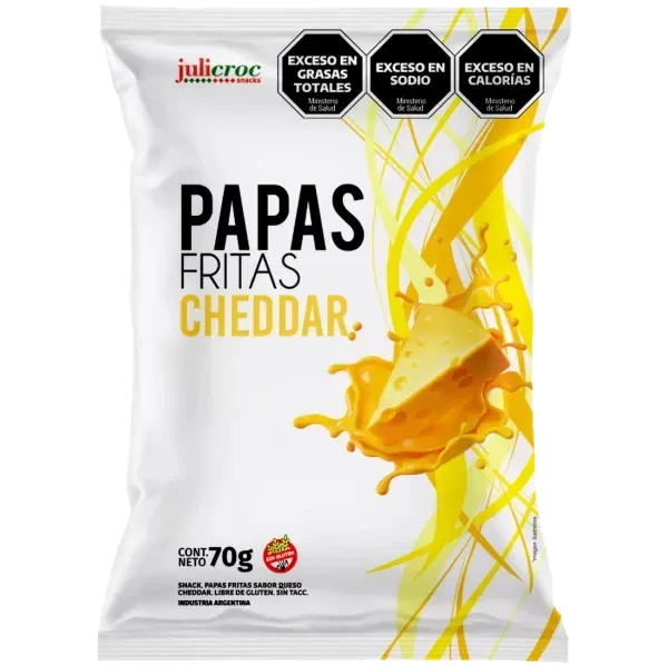 Ingredientes: Papas, aceite, saborizante/aromatizante artificial a queso cheddar.