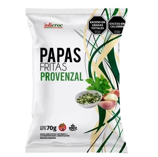 Ingredientes: Papas, aceite, sal, perejil y ajo deshidratados.